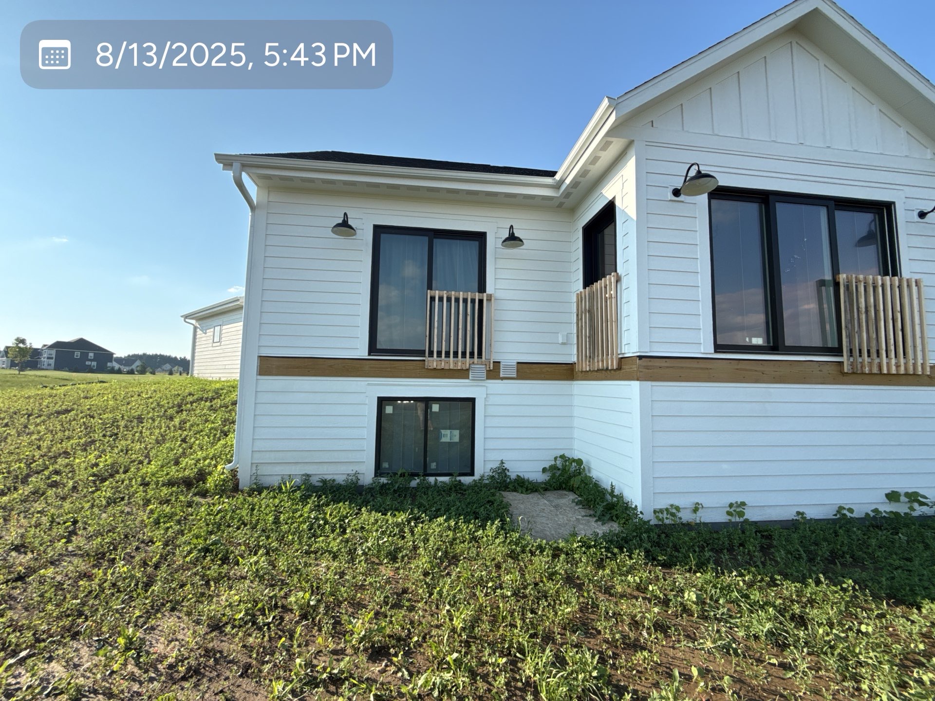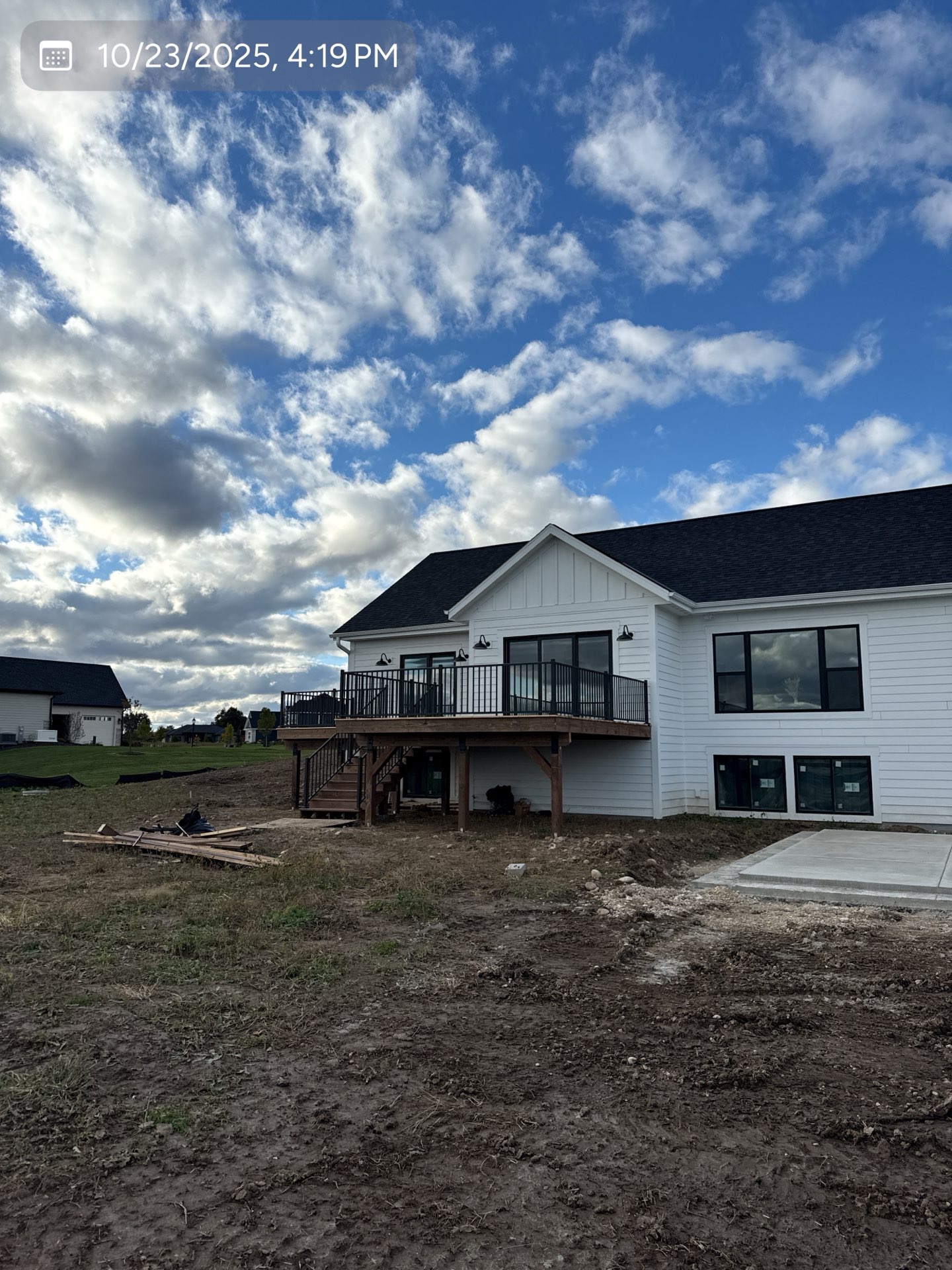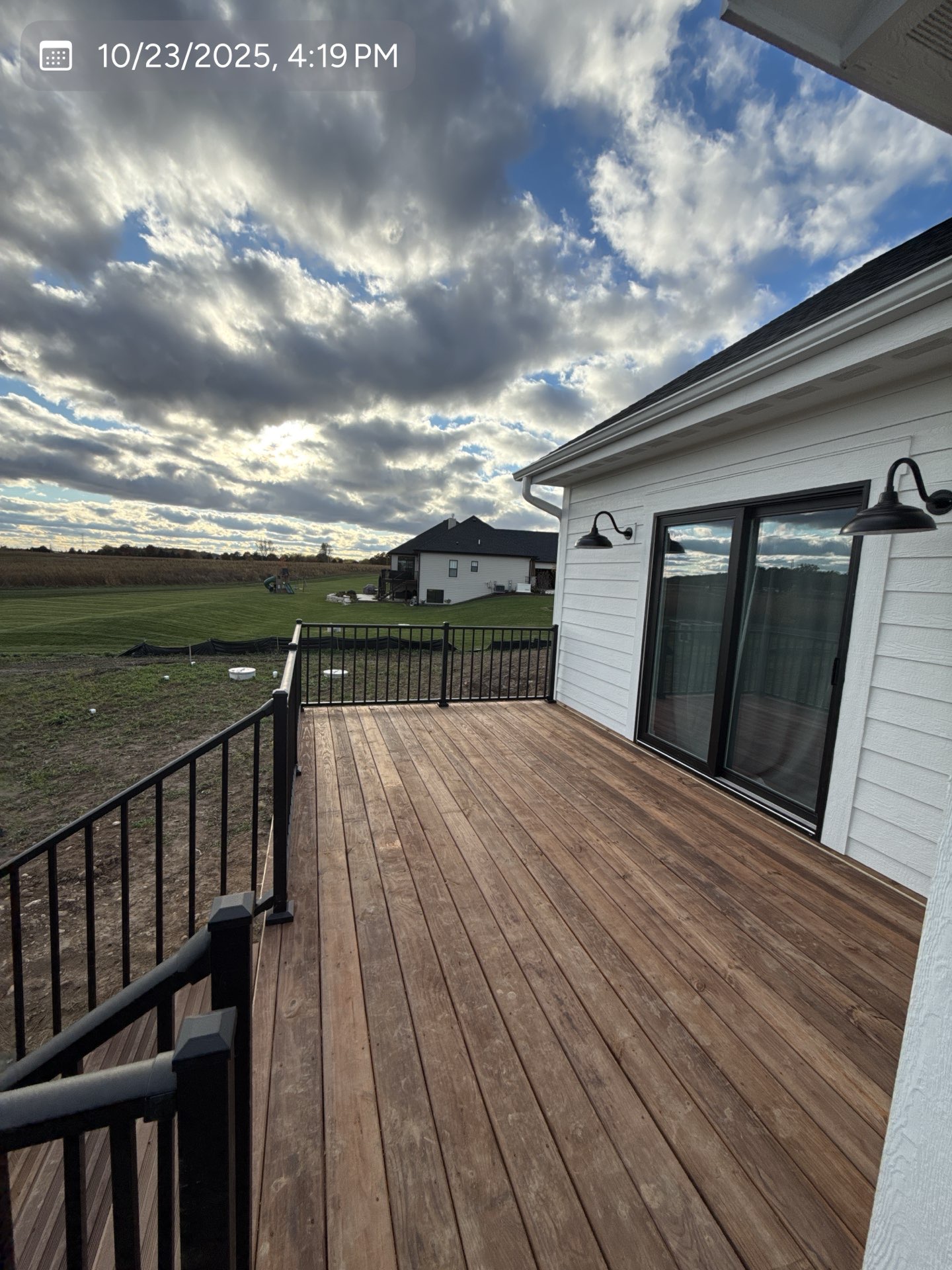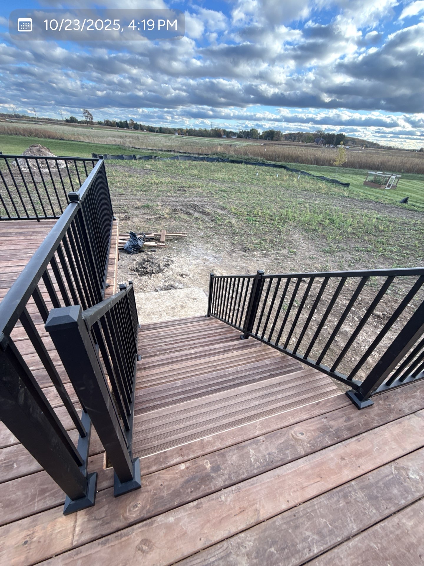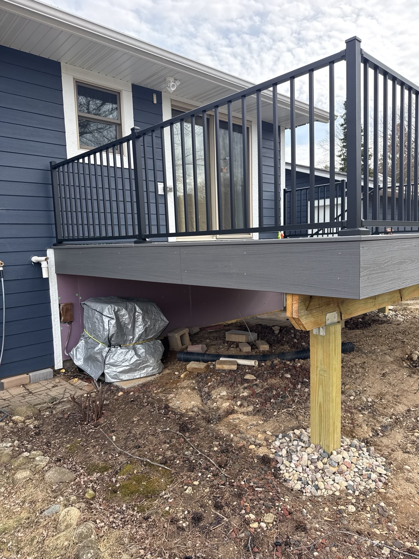New Cedar Tone Deck with Aluminum railings. Concrete patio